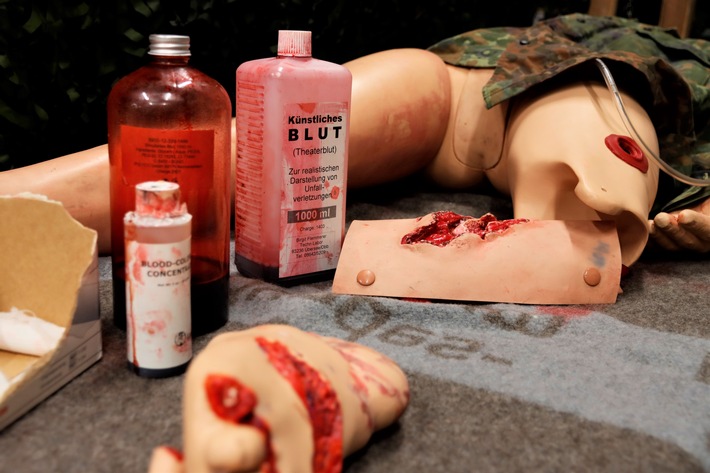 Der Schwerpunkt der dargestellten Lagen orientiert sich dabei an den Erfordernissen der taktischen Verwundetenversorgung in Gefechtssituationen - Sprengverletzungen, Schusswunden oder Traumata. In der Kontrollkabine lassen die Ausbilderinnen und Ausbilder daher neben den Verletzungen und den Symptomen auch die Umstände so realitätsnah wie möglich erscheinen. Über Lautsprecher wird Gefechtslärm eingespielt, Rauch steigt aus Nebelmaschinen auf und Funksprüche müssen beantwortet werden. Für die Soldatinnen und Soldaten bedeutet dies noch zusätzliche Herausforderungen.
