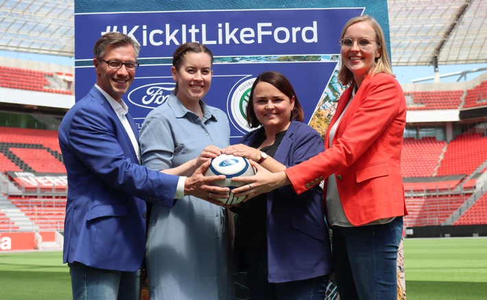 Ford und der Fußball-Verband Mittelrhein (FVM) schließen sich im Frauenfußball zusammen. Unter dem Motto "Kick it like Ford" werben der Kölner Automobilhersteller und der siebtgrößte Landesverband im deutschen Fußball für die Förderung von Frauen im Fußball und im Beruf. Der Auftakt für die Zusammenarbeit erfolgt am 30. Juli 2022 im Rahmen des verbandseigenen Leadership-Tags für Frauen in der Leverkusener BayArena. Mit der Partnerschaft bekräftigen Ford und der FVM ihr starkes Engagement in Sachen Diversität.