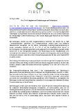Thomas Bünger, CEO von First Tin, sagte: "Die tieferen Bohrungen bei Tellerhäuser sind ein spannender Fortschritt für First Tin, mit dem Ziel, unsere angezeigten Ressourcen um eine hochgradige Zinnmineralisierung zu erweitern. Die vorangegangenen Aufbereitungstests deuten zwar darauf hin, dass die Aufbereitungseigenschaften dieser Mineralisierung jenen von Hämmerlein sehr ähnlich sind, jedoch sind wir der Meinung, dies mit unseren eigenen Proben zu bestätigen. Zusammen mit den Erweiterungsbohrungen bei unseren beiden Zinnprojekten in Deutschland und Australien sind wir gut aufgestellt, um in den kommenden Monaten einen bedeutenden Nachrichtenfluss abzuliefern, während wir den Wert unserer Vorkommen weiter steigern. "