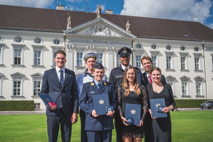 Zehn Rettungsschwimmer der Deutschen Lebens-Rettungs-Gesellschaft (DLRG) sind heute (9.9.) in Berlin im Schloss Bellevue von Bundespräsident Frank-Walter Steinmeier mit dem Silbernen Lorbeerblatt ausgezeichnet worden. Sie nahmen im Juli an den World Games in Birmingham in den USA teil, wo sie zusammen mit weiteren Teamkameraden insgesamt 14 Medaillen gewannen.