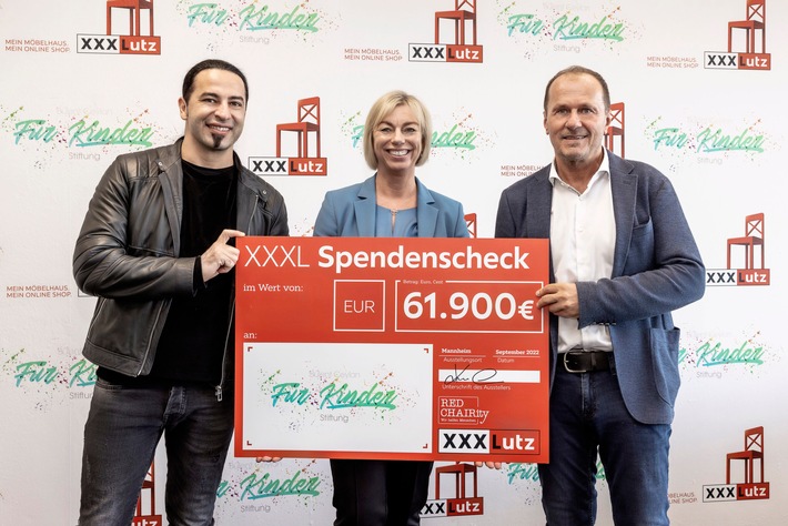 Strahlende Gesichter bei allen Beteiligten, weil es Comedian Bülent Ceylan zusammen mit der XXXLutz Unternehmensgruppe gelungen ist, genau den Kindern ein Lächeln ins Gesicht zu zaubern, die nicht auf der Sonnenseite des Lebens stehen: Mit der großen und bis dato in dieser Form einmaligen Malaktion hatten die XXXLutz Möbelhäuser bundesweit Kinder dazu aufgerufen, ihr ganz eigenes Bild zu malen, wie sie auf dem Roten Stuhl wohnen. Pro eingesandtem Bild hatte XXXLutz eine Spende in Höhe von 100 Euro an die "Bülent Ceylan für Kinder Stiftung" versprochen - und auch Wort gehalten: Denn jetzt nahm der erst vor wenigen Tagen mit dem Deutschen Fernsehpreis ausgezeichnete Comedian am Weltkindertag den XXXL-Scheck im Mannheimer Möbelhaus mit dem Roten Stuhl aus den Händen von Alois Kobler, CEO bei XXXLutz Deutschland, entgegen - herausgekommen ist die beeindruckende Spendensumme von sage und schreibe 61.900 Euro. Absender der Spende ist mit "RED CHAIRity (https://redchairity.com/)" die Hilfsorganisation der XXXLutz Unternehmensgruppe, die sich um die Umsetzung der gemeinnützigen Projekte kümmert und so seit 2010 auf ganz unterschiedliche Art und Weise weltweit humanitäre Hilfe leistet.