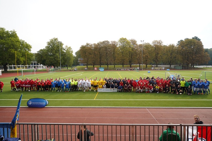 Während die Fußballprofis am vergangenen Wochenende pausieren durften, standen ihre Fans auf dem Platz: 250 (ehemals) übergewichtige Teilnehmer des Krebspräventionsprogramms 'Fußballfans im Training' (FFIT) zeigten am 24. September 2022 ihre neu gewonnene Fitness auf dem Spielfeld. Das Projekt FFIT wird gemeinsam mit der Deutschen Krebshilfe und dem Institut für Therapie- und Gesundheitsforschung, Kiel (IFT-Nord) seit Anfang 2017 in Vereinen der Bundesliga, 2. Bundesliga und der 3. Liga durchgeführt. Insgesamt 16 Fan-Teams folgten der Einladung der Gastgeber Stiftung 1. FC Köln und Deutsche Krebshilfe: Sie traten am 24. September beim 3. FFIT-Turnier auf dem Gelände der Ostkampfbahn am RheinEnergieSTADION gegeneinander an.