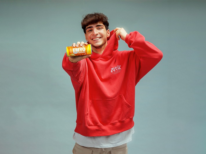 Bekannt ist Emir Bayrak vor allem für seine humorvollen Kurzvideos. Aus ihnen hat er sogar ein Buch produziert mit dem Titel "Lass mal machen. Ideen und Challenges für jede Situation". Zusammen mit dem Berliner Produkt Start-up LIMITD hat Emir nun seine erste eigene Limo entwickelt. Besonders sind nicht nur die Namen - Blueberry Bay, Orange Family und Mermaid Fantasy - auch der Geschmack ist anders: Jede EMYO Sorte ist ein fruchtig-frischer Mix aus drei verschiedenen Früchten, nicht zu süß, besonders prickelnd. Die Limo hat 10 Prozent Fruchtanteil und ist frei von künstlichen Aromen. "EMYO schmeckt einfach lecker, sieht geil aus und in jeder Dose steckt extrem viel Liebe, Leidenschaft und Arbeit. Man muss sie einfach probieren", sagt Emir Bayrak.