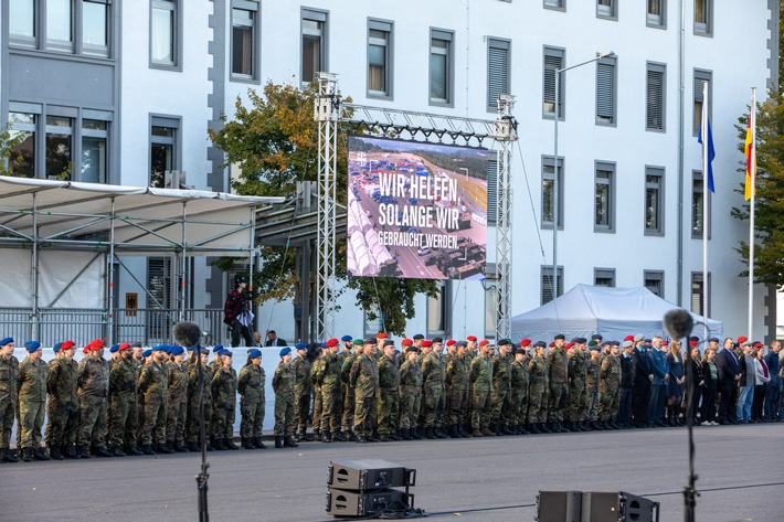 Der feierliche Appell war ein Ausdruck des Dankes an den Beitrag, den die Bundeswehr Seite an Seite mit staatlichen und privaten Rettungs- und Hilfsorganisationen für die Menschen vor Ort und das Gemeinwohl in Deutschland leistete.