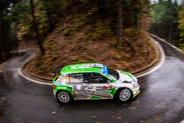 Zwei SKODA FABIA Rally2 evo-Fahrer starteten in das Finale der FIA Rallye-Weltmeisterschaft in Japan mit der rechnerischen Chance, den seit Saisonbeginn in der WRC2 führenden Andreas Mikkelsen auf den letzten Drücker noch von Platz eins zu verdrängen: Emil Lindholm aus Finnland und Kajetan Kajetanowicz aus Polen.