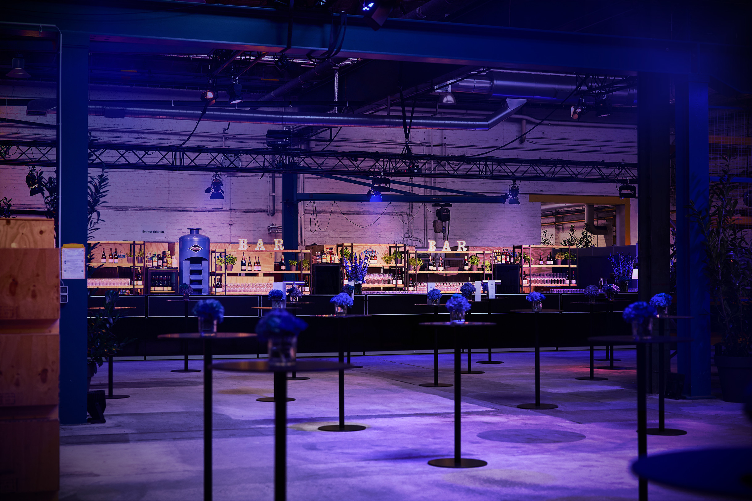 Zu den Besonderheiten des Events zählte unter anderem die Eventlocation: die Körting-eigene Werkhalle im Herzen von Hannover-Linden. Für eine Jubiläumsfeier „im eigenen Zuhause“ musste dort, wo jahrzehntelang schwere Fertigungsanlagen zur Herstellung von Strahlpumpen und Vakuumtechnik ihre Arbeit taten, Platz geschaffen werden, was insbesondere für die Projektleitung von event it zur Herausforderung wurde. Für die Nutzung der Werkhalle als Eventlocation musste beispielsweise ein rund 60 Seiten umfassender Nutzungsänderungsantrag gestellt werden – passend für bis zu 900 Gäste inklusive Veranstaltungspersonal. Erforderlich war auch die Installation einer Evakuierungsanlage sowie das Einreißen einer Wand, um eine breitere Tür einbauen zu lassen und damit Fluchtwegbreiten einhalten zu können. Die Werkhalle von knapp 3.000 qm wurde noch während des Produktionsbetriebs geräumt. Für den Veranstaltungszeitraum wurde die Produktion schließlich vorübergehend eingestellt. Sowohl Kunde als auch event it zeigten sich gegenüber diesen Hindernissen zuversichtlich und sorgten gemeinsam für die erfolgreiche Umsetzung aller geplanten Kompensationsmaßnahmen.