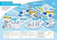 Diese Zielformulierungen der Transformation hat INFOGRAFIK PRO für thyssenkrupp Steel Europe als Großformatiges Wandposter zusammengefasst. In drei Schritten wird der Weg zum grünen Stahl aufgezeigt und mit zahlreichen Nebeninformationen unterfüttert: Die Wasserstoff-Infrastruktur, neue Einschmelzertechnologien und Stahlabnehmer werden aufgezeigt.