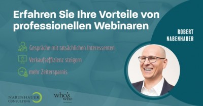 Nabenhauer Consulting bietet einen praktischen, online verfügbaren Kurs an, um ein Webinar zu entwickeln. Dieses kann rund um die Uhr genutzt werden, um eine ständige Anzahl an für Konvertierungen vorteilhaften Kunden zu gewinnen und den Umsatz zu steigern. Webinare können dazu verwendet werden, um mit Kunden zu interagieren, Neukunden anzulocken und sich als Experte in der Branche zu etablieren. Viele Unternehmen nutzen diesen Mehrwert und haben positiv von ihm profitiert. Mittlerweile besuchten 60.000 Personen die Webinare von Nabenhauer Consulting - eine große Anzahl an potentiellen Kunden. Aus diesem Grund erstellte Nabenhauer Consulting den Kurs, um vielen eine Chance zu geben, dieses kraftvolle Werkzeug zu ihrem Nutzen zu gebrauchen. Wieder würden sie niemals auf diesen Kurs verzichten wollen.