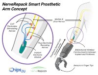 Ein Projekt zeigt besonders deutlich, welchen Weg die Forschung vom Labor in die Praxis nimmt und mit welchen Fragestellungen sich die Berliner Bioelektronik-Expert*innen in naher Zukunft beschäftigen werden. Ziel des 2023 gestarteten Projekts „Nerve Repack“ ist die Entwicklung intelligenter Prothesen, die über neuronale Schnittstellen verfügen. Das Projekt wird zu drei Hauptergebnissen führen: eine Prothese für Patienten mit einer Unterarmamputation und zwei Exoskelette für Patienten mit jeweils ein- und beidseitiger Lähmung der unteren Gliedmaßen. Die Kombination aus Prothese und neuronalem Implantat ermöglicht nicht nur die einseitige Übertragung des Bewegungsimpulses in Richtung Prothese, sondern auch die Rückübertragung von Informationen an das Gehirn, also eine bidirektionale Kommunikation. Im Fall der Unterarmprothese wird die bidirektionale Kommunikation ein taktiles Feedback liefern und dem Patienten ein intuitiveres Benutzererlebnis vermitteln, so dass sich die Prothese mehr wie die eigene Hand anfühlt. Die Exoskelette werden in der Lage sein, motorische Befehle von Spinalnerven zu lesen und Rückmeldungen von Sensoren an den Füßen zu integrieren, um den Gang zu verbessern und eine reibungslose Gehbewegung zu ermöglichen. Langfristig dürfte dies die Lebensqualität von Millionen von Menschen mit amputierten oder gelähmten Gliedmaßen verbessern und eine größere soziale und finanzielle Unabhängigkeit ermöglichen. Im Projekt Nerve Repack arbeiten 27 Projektpartner unter der Koordination des rumänischen Nationalen Instituts für Forschung und Entwicklung in Mikrotechnologien daran, die am Fraunhofer IZM erforschten Plattformtechnologien in die medizintechnische Praxis zu übertragen.