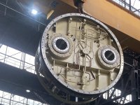 Seit 2019 hat SMS group regelmäßig Vor-Ort-Inspektionen durchgeführt, um den Zustand des Haspeldorns genau zu überwachen. So konnten die SMS-Experten den Instandhaltungsbedarf frühzeitig erkennen. Im Jahr 2022 wurde ein kritischer Verschleiß an den Gelenklagern festgestellt, der unverzügliche Instandhaltungsmaßnahmen erforderlich machte. Dank der rechtzeitigen Meldung durch SMS group konnte ADI alle notwendigen Ersatzteile im Voraus organisieren und sich optimal auf die Reparatur vorbereiten. Der Austausch des Rotors mit einem Durchmesser von vier Metern und einem Gewicht von 55 Tonnen stellte eine besondere Herausforderung dar. Dank sorgfältiger Planung konnte der Rotor jedoch sicher zur Reparatur angehoben werden. Für den Einbau des Gelenklagers mit einem Außendurchmesser von 900 Millimetern kamen modernste Technologien wie Induktionsheizgeräte und hydraulische Spannvorrichtungen bis zur metrischen Größe M80 zum Einsatz, die Präzision und eine zuverlässige Funktion der Anlage gewährleisten.