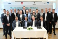 Dr. Lars Kulik, Vorstand der RWE Power, und Vertreter der Arbeitsgemeinschaft (ARGE) aus den Bauunternehmen MAX STREICHER, LEONHARD WEISS und Epping Rohrvertrieb haben jetzt die entsprechenden Verträge unterzeichnet. „Mit dieser Unterzeichnung haben wir einen weiteren wichtigen Schritt auf dem Weg zum Bau der Rheinwassertransportleitung gemacht. So schaffen wir die Grundlage dafür, dass aus den Tagebauen attraktive Seenlandschaften entstehen können“, sagt Dr. Kulik.