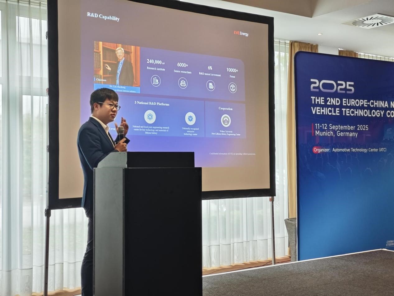 (firmenpresse) - Am 11. und 12. September 2025 fand in München die zweite Europe-China New Energy Vehicle Technology Conference statt. Dr. Richard Zhang, Geschäftsführer von EVE Deutschland, war auf der Konferenz anwesend und hielt eine Grundsatzrede mit dem Titel „In Europa verwurzelt, Symbiose und Wachstum“. In der Rede wurden die Geschäftsstrategien von EVE Energy in Europa ebenso behandelt wie die Erfolge in den Bereichen technologische Innovation, lokale Produktion und nachhaltige Entwicklung.