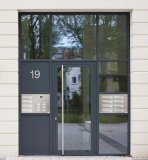 Türseitenteilanlagen bündeln verschiedene Funktionen in einem System. Sie erweitern den Eingangsbereich optisch, erfüllen Sicherheitsanforderungen vergleichbar mit RC2 und ermöglichen eine Postzustellung ohne Betreten des Gebäudes. Kommunikationsmodule wie Klingelanlagen, Audio oder Video Systeme sowie klar strukturierte Namensfelder lassen sich direkt integrieren und erhöhen Komfort und Übersichtlichkeit.