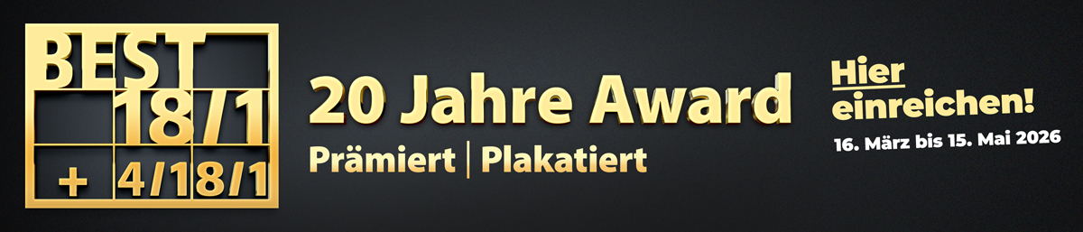 Der Rahmen ist in diesem Jahr ein ganz besonderer - der BEST 18/1 Award feiert sein 20jähriges Jubiläum. 20 Jahre, die auf ihre eigene Weise Plakat- und Werbegeschichte geschrieben haben. Denn der BEST 18/1 Award nimmt seit jeher eine Ausnahmestellung unter den Out of Home-Awards ein: Er ist sowohl für "echte" Kampagnen offen als auch für Ideen, die bisher nicht das Licht der Öffentlichkeit erblickt haben.