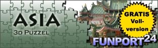 (firmenpresse) - Funport24 stellt ein 3D Puzzle kostenlos zum download online. Wer schon immer gerne Puzzle gespielt hat, dem wird 3D Puzzle gefallen. Ein Puzzle mit fröhlichen Motiven in gemütlicher Atmosphäre zu lösen, macht den Reiz dieses Spiels aus. Im Gegensatz zu einem realen Puzzle muss man sich aber nicht mit dem langwierigen Auspacken oder mit verloren gegangenen Puzzleteilen aufhalten sondern kann sofort loslegen. Die Ansicht auf das Puzzle kann man frei schwenken, rotieren und heranzoomen. Dadurch behält man den Überblick in kniffligen Situationen. Puzzleteile sind per Maus auswählbar und verschiebbar. Zusammenpassende Teile werden automatisch zu einer Gruppierung zusammengefügt, die sich nach Wunsch verschieben lässt. Auf www.funport24.de finden Sie aber auch noch Puzzle mit anderen Motiven die Vollversionen kosten 2,50 Euro. Also hier bekommen Sie das Puzzle mit den Motiven aus Asien geschenkt. Und wenn Sie Lust haben, spielen Sie eine Runde Sudoku auf den Seiten online. Natürlich auch kostenlos. Starten Sie das Sudoku und klicken Sie die rechte Maustaste es erscheint ein Ziffernblock, der Ihnen die Arbeit erleichtert Sie können auch mal Sudoku mit römischen Zahlen probieren. Klicken Sie hierzu auf den Button Grafik Set und starten Sie das Antik Sudoku. Also viel Spass und Fun auf dem Funport24.