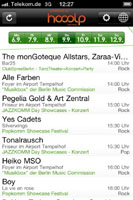 Die iPhone App „Berlin Music Week“ steht seit heute im AppStore kostenlos zum Download bereit. Alle Konzerte, die vom 6. bis 12.9.2010 in Berlin stattfinden, werden mit der App angezeigt. Das sind die Termine des Berlin Festivals, der Popkomm Showcases, der Jazzkomm, des ClubSpreeBerlin, des Festivals in der Kulturbrauerei, des UNERHÖRT!-Musikfilmfestivals und der zahlreichen ganz normalen Konzerte, die auch außerhalb der Berlin Music Week den exzellenten Ruf der Stadt im Bereich Musik begründen.