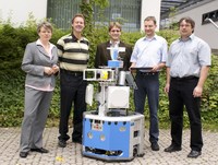 Die innovativen Gründer Dr. Carsten Hillenbrand, Bernd-Helge Schäfer und Jens Wettach werden dabei von ihrem Mentor Prof. Dr. Karsten Berns, Dekan des Fachbereichs Informatik und Leiter der Arbeitsgruppe Robotersysteme, unterstützt. Das Gründungsvorhaben basiert auf der Entwicklung von kompakten mobilen Transportrobotern, die sich eigenständig in der Umwelt orientieren, Hindernissen ausweichen und sich leicht an Arbeitsabläufe anpassen lassen. Besonders für kleinere Betriebe zahlt sich ein solches Robotersystem, das einen kontinuierlichen Gütertransport ermöglicht, zur Abwicklung der innerbetrieblichen Logistik aus. Um die Akzeptanz bei den Unternehmen zu steigern, soll das System auch als Dienstleistung auf Basis eines Mietvertrags angeboten werden.