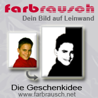 Farbrausch ist ein Projekt von Verena Schlemmer und wurde im Januar 2007 gegründet. Im Online Shop unter www.farbrausch.net werden Kunstdrucke auf Leinwand nach eigener Fotovorlage angeboten. Die Palette reicht hier von Bildern im Retro-, Pop-, oder Klassik-Stil bis hin zu fertigen Bildern auf Keilrahmen.