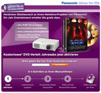 Beim Kauf eines Heimkino-Projektoren Panasonic PT-AX100E erhalten Kunden zusätzlich ein Jahresabo für den Online-DVD-Verleih glowria