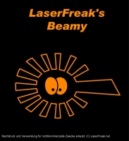 „Beamy ist das offizielle Maskottchen der LaserFreaks. Von jeder verkauften Beamy’s World Lasershow fließt ein Teil des Erlöses an die LaserFreak.net Community.“
