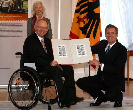 Erstdrucke aus den Händen von Bundesfinanzminister Wolfgang Schäuble.