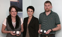 Den Hauptgewinn, vier Goldmünzen ?Krügerrand?, konnte sich die ITXTRA GmbH aus Reichshof-Hahn sichern. Channel Managerin Agnes Bergk (Foto Mitte) überreichte den glücklichen Gewinnern und Geschäftsführern Yvonne (Foto links) und Ulf Bitter (Foto rechts) die Münzen im Wert von über 2.500 Euro. Den zweiten Platz belegte das Team der AS Electronics aus Lohr und gewann eine Goldmünze ?Känguruh 2010? zu einer Unze. Knapp dahinter landeten die Vertriebler der DIDAS AG aus Berlin, die einen Goldbarren zu einer Unze gewonnen haben. Über den vierten Platz, einen Goldbarren zu 20 Gramm, konnten sich die Damen und Herren der Bosse PC-Beratung aus Hamburg freuen. Den letzten Platz auf einen Gewinn, einen Goldbarren zu zehn Gramm, sicherte sich schließlich die intercept Consulting aus Ratingen.