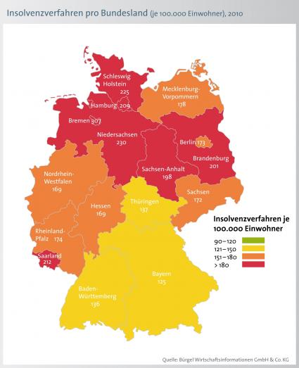 indes die südlichen Bundesländer da: Bayern mit 125 Privatpleiten je