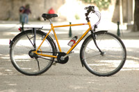 Allerdings schwammen einige Hersteller schon immer gegen den Strom: Die sonnigen Melonengelbtöne etwa, die bei riese und müller (www.r-m.de) an bestimmten Modellen serienmäßig waren und bei Utopia (www.utopia-velo.de) seit 2002 zur Wahl stehen, machten das Auffinden des Rades im Gewimmel vor dem Bahnhof leichter und signalisierten generell: Hoppla, hier kommt ein Qualitätsfahrrad! Wobei etwa riese und müller in Sachen Farbgestaltung erst kürzlich eine Kehrtwende vollzogen hat und den Kunden seither die Möglichkeit gibt, jedes Modell in der Wunschfarbe aus der Palette der Lackiererei zu ordern („system 3“ genannt). Diese Farbwahl ist bei utopia bereits seit 1982 möglich, Melonengelb ist gegenwärtig die Platz 2 auf der Farbhitliste; hinter Schwarz...