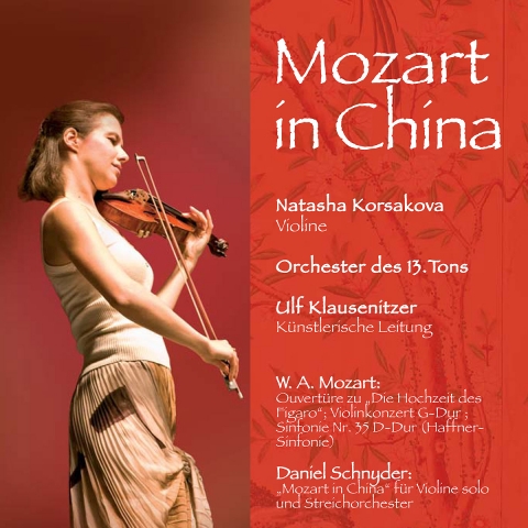 Zu hören sind Werke von Wolfgang Amadeus Mozart und Daniel Schnyder: Neben der "Figaro-Ouvertüre", dem G-Dur-Violinkonzert KV 216 und der Haffner-Sinfonie KV 385 von Mozart ist auf dieser CD-Aufnahme auch die konzertante Uraufführung der Violinfassung von Daniel Schnyders "Mozart in China" zu hören. Der in New York lebende Schweizer Komponist, der auf ein beeindruckendes und vielseitiges Oeuvre blicken kann, hat diese Bearbeitung für Violine und Streichorchester seiner im Mozartjahr 2006 entstandenen Komposition eigens Natasha Korsakova gewidmet.