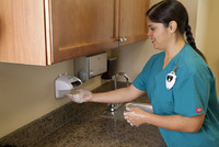 The HyGreen Hand Hygiene and Recording System is now used in leading US hospitals such as St. Jude's Children's Hospital, University of Illinois Medical Center at Chicago, and the Jesse Brown Veterans Affairs Medical Center. After cleaning his or her hands with soap or gel, a healthcare worker places them under a HyGreen sensor which sends a wireless "all clean" message to his or her HyGreen badge, which then blinks green. When the healthcare worker approaches a patient bed, the HyGreen monitor above the bed checks if the badge is transmitting an "all clean" signal. If the badge is not green, the badge vibrates, reminding the healthcare worker to wash. Reports on hand-washing compliance are available to hospital management in real time.