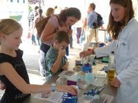 Interessierte konnten sich auf der kleinen BIO.NRW-Experimentiermeile von Wissenschaftlern und Wissenschaftlerinnen die Biotechnologie von der Steinzeit bis heute erklären lassen und sie erhielten Antworten auf alle Fragen, die sich während des Rundgangs im Forschungszelt ergaben. Vor allem aber die Pipettierstation war bei allen Besuchern und Besucherinnen der Hit. Der Farbwechsel von einer sauren hin zu einer basischen Lösung faszinierte rund 300 experimientierfreudige Kinder und Jugendliche. "Wenn ich noch einmal jung wär - ich würde das auch studieren wollen" war mehrfach von begleitenden Erwachsenen mit einem leichten Bedauern zu hören. Viele Jugendliche, die sich von der Vielfalt der Biotechnologie begeistern ließen, nutzten die Gelegenheit, sich bei den Wissenschaftlern und Wissenschaftlerinnen über das Studienfach Biotechnologie zu informieren.