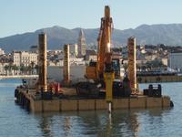 Ante Milacic, Projektmanager vor Ort, berichtet: "Derzeit bauen wir den über Wasser liegenden Teil der Küstenmauer. Das bedeutet, die meisten Unterwasserarbeiten sind erledigt. Wir müssen nur noch das Hafenbecken bis auf 5,5 m vertiefen. Danach kann ein anderes Unternehmen mit der dritten Projektphase beginnen, dem Bau der Fußgängerzone und der Straße.