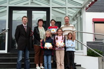 (firmenpresse) - Im Rahmen des diesjährigen „Tag des Deutschen Fertigbaus“ veranstaltete das Westerwälder Fertighausunternehmen Fingerhut wieder einen tollen Malwettbewerb. Aufgabe für die Kinder war es, kleine Häuser aus Pappe mit viel Fantasie und nach ihren Vorstellungen zu bemalen. Nachdem die schönsten Häuser vor kurzem ermittelt wurden, konnte einer der Geschäftsführer von Fingerhut, Holger Linke (links), nun den drei „kleinen“ Gewinnern (Alexander Eichwald, Lina Sophie Heimann, Jenny Hust) mit Freude die Preise überreichen. Mit auf dem Foto sind Familienangehörige der drei Gewinner.
