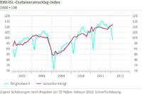 (PresseBox) - Der Containerumschlag -Index des Rheinisch- Westfälischen I nstituts für Wirtschaftsforschung (RWI) und dem Institut für Seeverkehrswirtschaft und Logi stik (ISL) ist im Februar erneut gestiegen, was auf eine weiterhin kräftige Zunahme des inte rnationalen Warenhandels hindeutet. Saisonbereinigt stieg der Indexwert auf 111,9, nach 111,2 im Januar. Damit hat sich der Index seit November 2011 um 4% verbessert. Die Ang aben für den Februar sind Ergebnis einer Schnellschätzung, die auf den bereits veröffentlic hten Daten von 21 Häfen basiert, die für mehr als 50% des durch den Index abgebildeten U mschlagsvolumens stehen. Die vor einem Monat veröffentliche erste Schätzung für den Januar 2012 wurde durch die aktuelle, auf einer breiteren Datenbasis stehende Rechnung bestätigt.