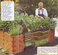 Die dabei entstehende Humuserde bietet den Pflanzen im Hochbeet durchweg beste Wachsbedingungen. Danach wird die Erde im Garten verteilt und das Hochbeet neu aufgebaut. Sie können alle wertvollen und gesunden Gartenabfälle im eigenen Garten verwerten und durch die hochgestellte Bauweise wird die Gartenarbeit erleichtert.