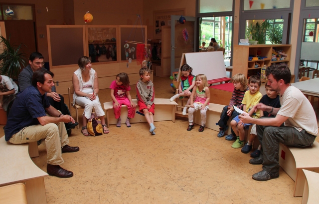 Schauspieler Hans-Werner Meyer besucht BilingualeIntegrative Kindertagesstätte BiLLY des Vereins QuerWege e.V. in Jena