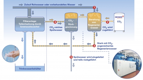 Für die Regeneration der Ionenaustauscher werden keine zusätzlichen Salze benötigt, wie das bei anderen Verfahren der Fall ist. Kohlendioxid genügt, um die gebundenen Ionen wieder aus den Austauschern zu lösen. Das Spülwasser aus der Regeneration enthält deshalb nur die aus dem Rohwasser abgetrennten Salze. Daher dürfen die meisten Betreiber von Carix®-Anlagen in Deutschland ihr Spülwasser in Oberflächengewässer einleiten. Zur positiven ökologischen Bilanz des Verfahrens trägt auch bei, dass sich der größte Teil des eingesetzten Kohlendioxids im Prozess zurückgewinnen und wiederverwenden lässt.