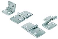 Das Sortiment umfasst drei Grundtypen: Scharniere für den linken und rechten Anschlag zum Aushängen sowie fest mit der Achse verbundene Scharniere für flexible Anwendungen. Die Achse besteht standardmäßig aus einem blanken Edelstahlstift. Alle drei Typen bietet KIPP in sieben Größen von 26 bis 57,5 mm Flügellänge und mit einer einheitlichen Höhe von 48 mm an.
