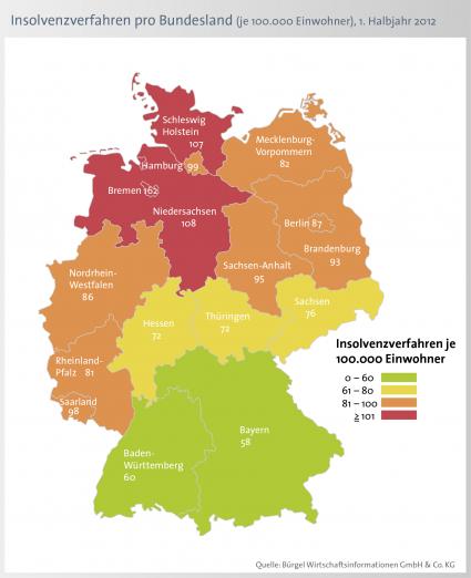 liegt im 1.Halbjahr 2012 bei 80 Privatpleiten je 100.00 Einwohner. Am