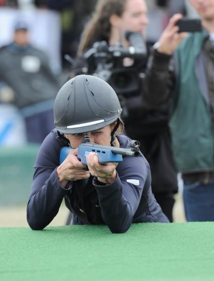 kann, muss der Reiter wie beim Biathlon mit einem Lasergewehr fünf
