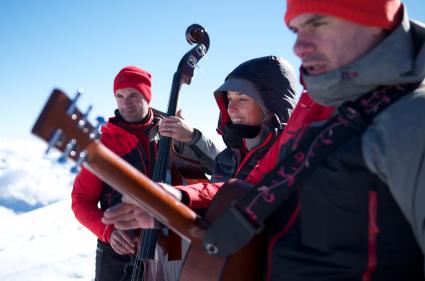 Begleitung ihrer Band auf dem Gipfel des Mont Blanc (4810m) und sang