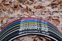 Dass auch Fahrradreifen ein Hightech-Produkt sind, ist vielen nicht bewusst. Die jüngste Generation der Zugpferde im Sortiment von Hersteller Bohle (www.schwalbe.de) zieht mehr Aufmerksamkeit auf sich, denn sie ist bunt eingefärbt. Beispiel Ultremo R: Der superleichte Rennradreifen (je nach Breite ab 170 Gramm) bietet beste Haftungswerte für starke Kurvenschräglagen und rollt mit seinen radial (d. h. in Laufrichtung) angeordneten Gewebelagen zehn Prozent leichter als sein eh schon seidenweich laufender Vorgänger. Überdies ist er ausgesprochen Pannenfest. Bohle bietet den Ultremo R in sechs Farbvarianten für 45,90 Euro an.