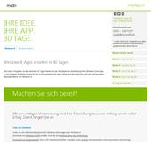 (PresseBox) - Ein neues Webportal zeigt Entwicklern - vom Einsteiger bis hin zum Profi - wie man in 30 Tagen zur eigenen App gelangt und das Potenzial der Windows Plattform nutzen kann. Daneben erfahren Interessierte alles Wissenswerte zu Marktpotenzial und Vermarktungsmöglichkeiten der Windows-Plattform. Mit mehr als 40 Millionen verkauften Lizenzen in den ersten vier Wochen stellt Windows 8 eine einzigartige Möglichkeit dar, mit seiner App finanziell erfolgreich zu sein. Eine App-Entwickler-Hotline unterstützt bei Fragen.