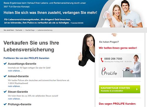 Die PROLIFE GmbH versteht sich als verbraucherorientiertes Unternehmen, rund um den Ankauf von Lebensversicherungen, Rentenversicherungen, sowie von Bausparverträgen und Unfallversicherungen mit Beitragsrückgewähr. Durch unsere Philosophie Mehrwerte schaffen, ermöglichen wir Ihnen eine sichere und schnelle Beschaffung der Gelder aus Ihren Verträgen. Diesen Mehrwert schaffen wir Ihnen durch eine rechtliche und versicherungsmathematische Nachbearbeitung durch unser fachkompetentes Team aus Profis der Versicherungswirtschaft und Fachanwälten