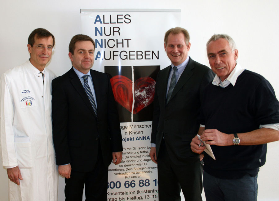 Fast 550 Gespräche fanden 2012 in der Sprechstunde und über 300 am Krisentelefon statt. „Doch die Bedeutung des Projekts lässt sich nicht in Zahlen messen“, sagte Oberarzt Norbert Kohl, der den Preis zusammen mit zahlreichen weiteren Mitarbeitern des Projekts dankbar entgegennahm. Hier ginge es vielmehr um Einzelschicksale. „Wir alle waren doch wahrscheinlich selbst einmal als junger Mensch in einer Krise“, führte er aus. Bei ANNA könnten auch diejenigen, die zuhause in einer sehr schwierigen Situation seien, gute Beziehungen aufbauen, die ihnen dabei helfen einen positiven Weg in ihrem Leben zu gehen, so zum Beispiel Kinder psychisch kranker Eltern gemeinsam mit einer Kunsttherapeutin.