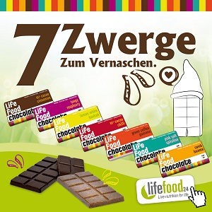 Rohkost-Schokoladen - lifefoods 7 Schoko-Zwerge stehen für die Vielseitigkeit des rohen Schokoladengenusses in fruchtig-frischen und noch nie dagewesenen schokoladigen Kombinationen. Egal, ob zum Vernaschen, Verschenken oder Unterwegs-Genießen, die kleinen Schoko-Täfelchen sind Helfer in jeder Situation.