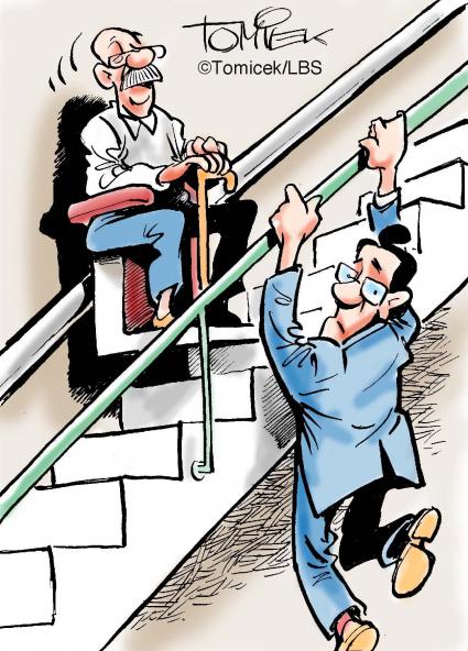 ältere und schwache Personen, die sich auf der Treppe nur langsam