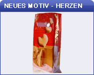 Die Tragetasche richtet sich vorwiegend an den Einzelhandel und Einzelhandelsketten. Der Vorgänger der bei uns liebevoll bezeichneten „Rosen Tragetasche“ wurde sehr häufig von Juwelieren und Schmuckverkäufern geordert. Die neue Herzen Tragetasche ersetzt mit Ihrem neuen Motiv die bekannte Rosentragetasche, mit verbessertem Motiv und höherer Stabilität.