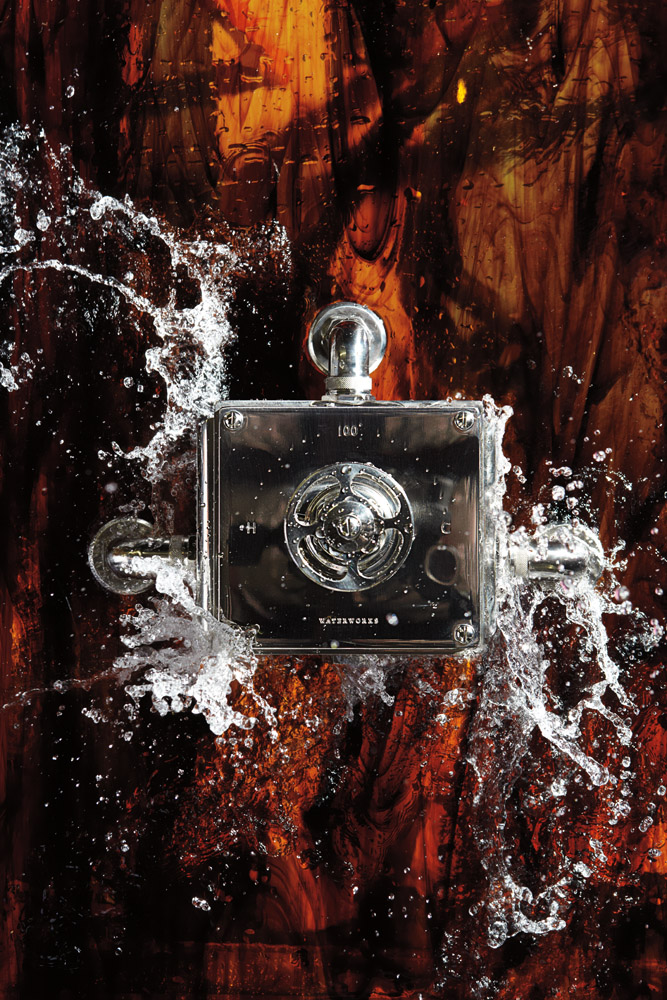 R.W. Atlas, das ist detailgetreues, traditionelles Industriedesign mit kräftigen Hebeln, Rohrleitungen und radähnlichen Knäufen, die teilweise eben nicht hochglanz poliert sind. Grundsolide gestaltet, wiegt die wandmontierte Kopf- und Handbrause mit Aufputz-thermostat um 17 Kilo. Die sanft schimmernde Silbernickeloberfläche gibt ihr einen hochwertigen, klassischen Look.