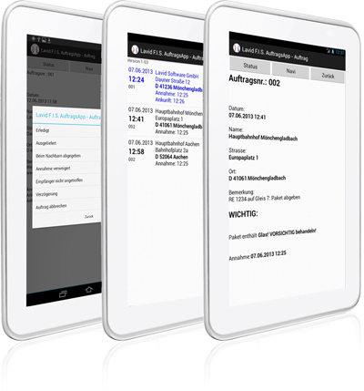 (firmenpresse) - Mit der neuen Lavid Auftrags-App für Android-Geräte können Kunden der Lavid Software GmbH ab sofort ihre Fahrer und Servicetechniker kostengünstig mit Aufträgen versorgen und aktiv in die Geschäftsprozesse einbinden. Darüber hinaus ermöglicht die App den Disponenten eine Ortung der angebundenen Geräte und eine übersichtliche Spurverfolgung im Online-Portal. Durch die elektronische Übermittlung der Adressdaten kommt es dabei auch zu keinen Übertragungsfehlern von Adresse. Mithilfe der bereits auf den Geräten vorhandenen Navigations-Apps können die Adressdaten unmittelbar angesteuert werden. Die neu entwickelte Lavid Auftrags-App ist kostenfrei verfügbar und gegen eine monatliche Gebühr nutzbar. Mit einem Preis ab 6,50 Euro monatlich pro Benutzer ist die App der Konkurrenz gegenüber im Vorteil.